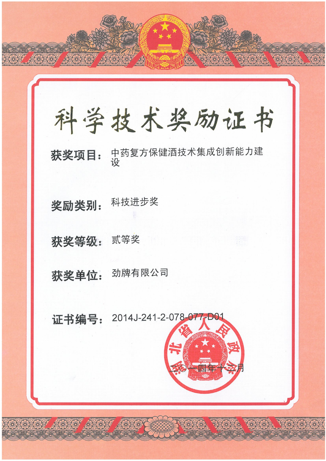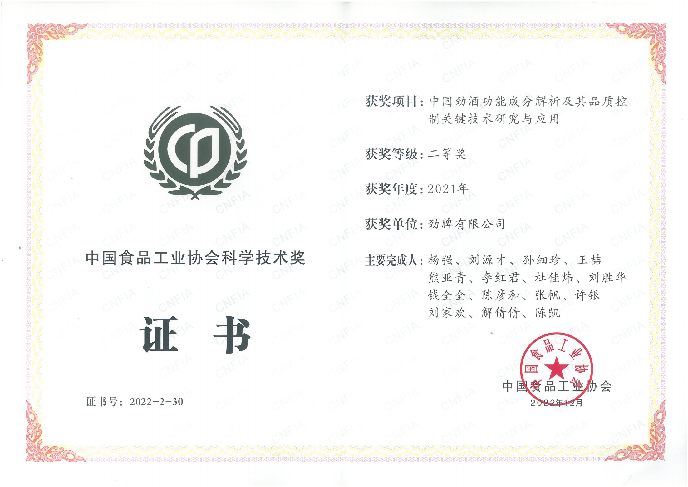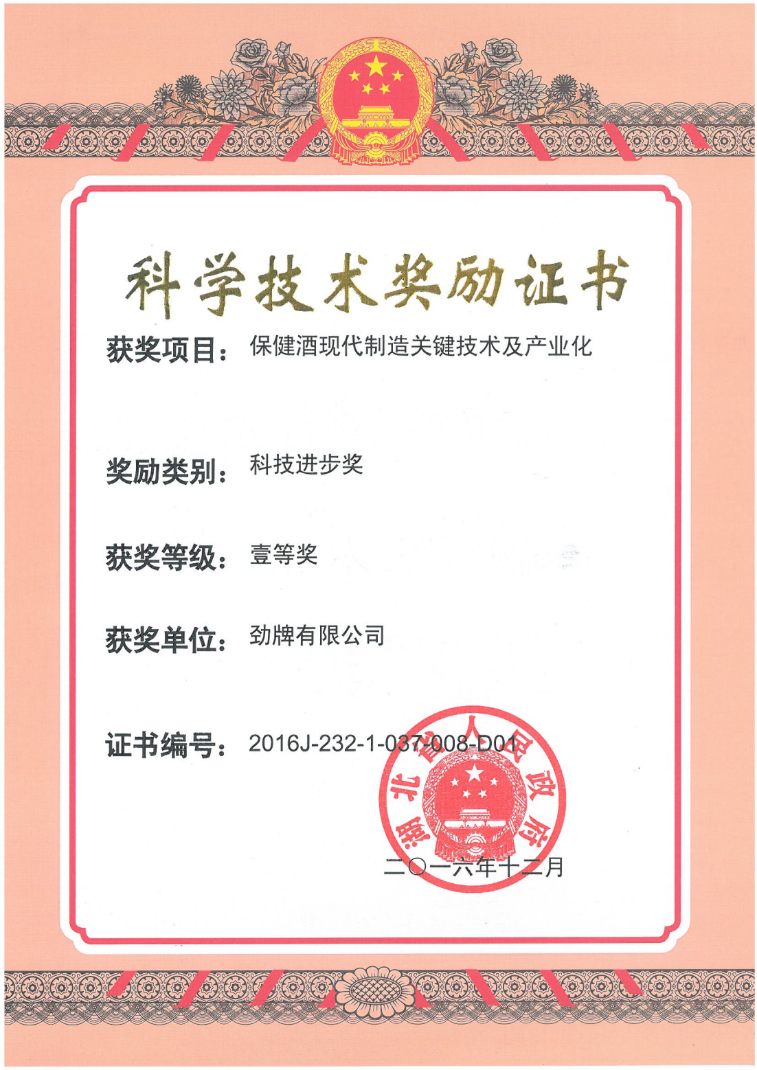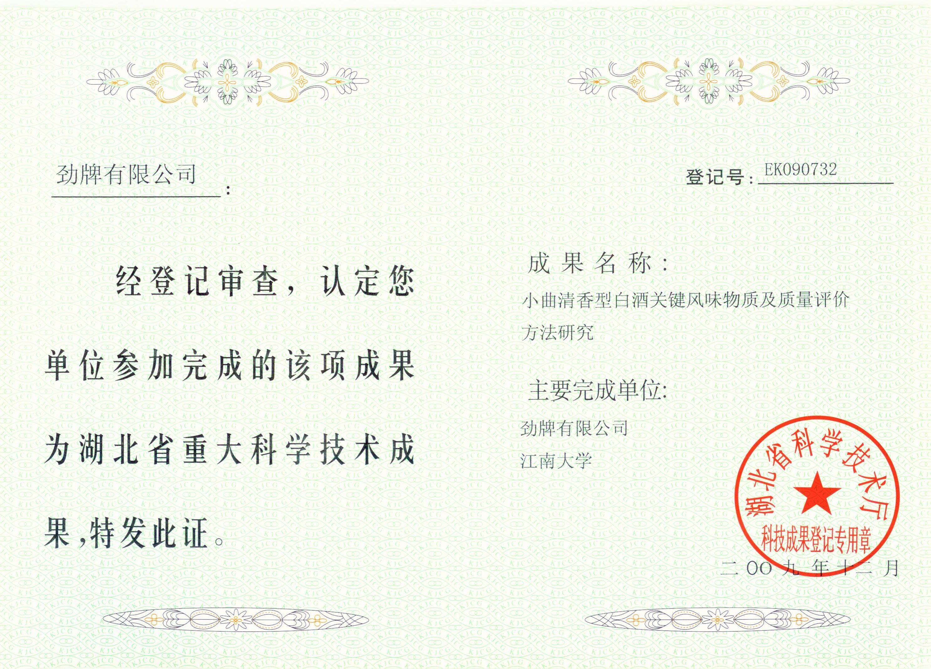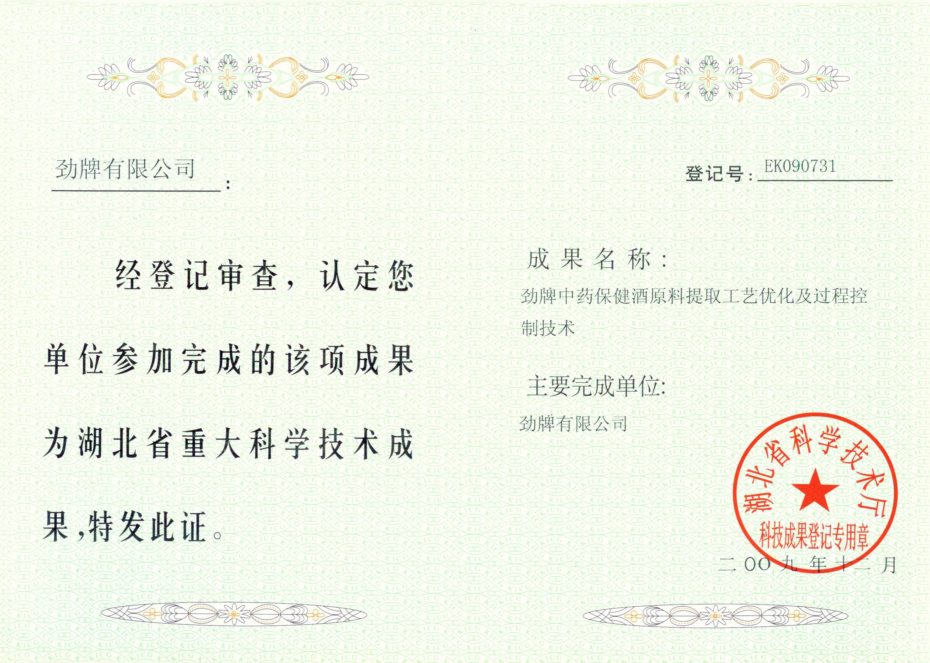 近年來,公司圍繞保健酒、草本白酒和中草藥新產品研發(fā)、產品改進和基礎應用技術,在中藥數(shù)字化提取、小曲酒釀造新工藝、中藥指紋圖譜等核心技術方面擁有自主知識產權,通過行業(yè)協(xié)會等鑒定機構技術評估22項,其中15項成果鑒定為“國際領先”水平,7項成果鑒定為“國際先進”水平。