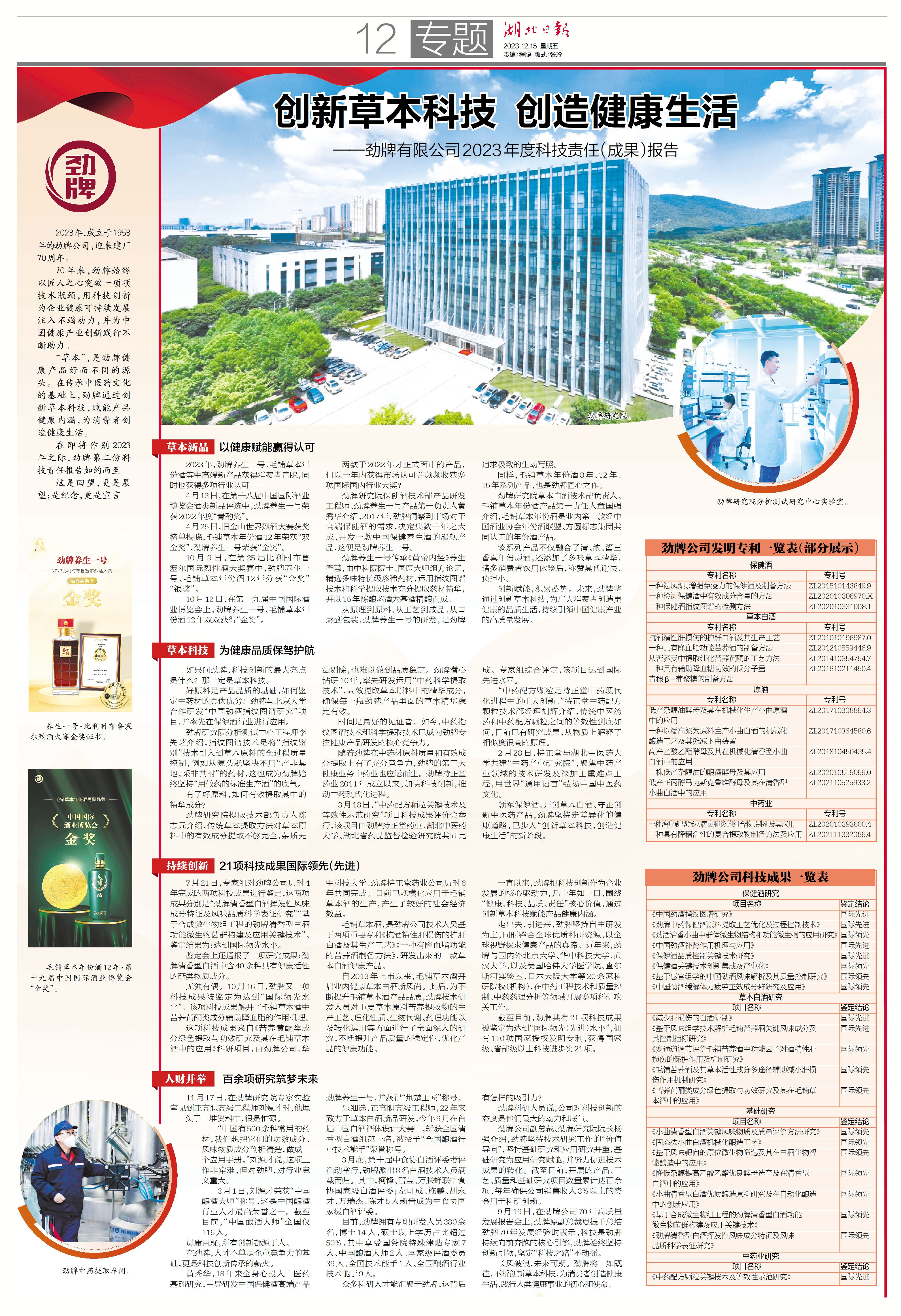 70 年來 , 勁牌始終以匠人之心突破一項項技術瓶頸 , 用科技創(chuàng)新為企業(yè)健康可持續(xù)發(fā)展注入不竭動力 , 并為中國健康產業(yè)創(chuàng)新踐行不斷助力?!安荼尽?,是勁牌健康產品好而不同的源頭。在傳承中醫(yī)藥文化的基礎上,勁牌通過創(chuàng)新草本科技,賦能產品健康內涵,為消費者創(chuàng)造健康生活。