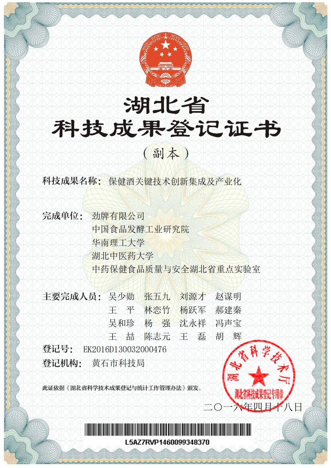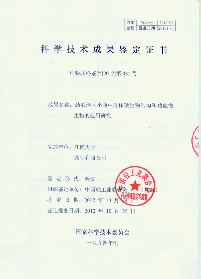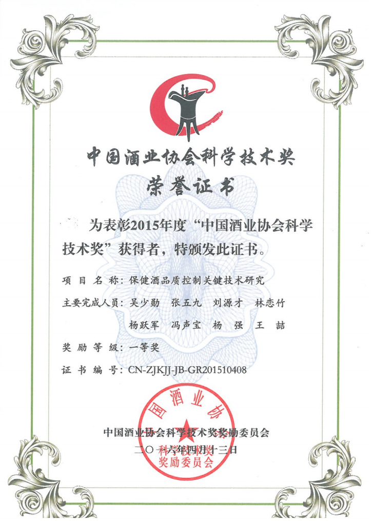 近年來,公司圍繞保健酒、草本白酒和中草藥新產品研發(fā)、產品改進和基礎應用技術,在中藥數(shù)字化提取、小曲酒釀造新工藝、中藥指紋圖譜等核心技術方面擁有自主知識產權,通過行業(yè)協(xié)會等鑒定機構技術評估22項,其中15項成果鑒定為“國際領先”水平,7項成果鑒定為“國際先進”水平。